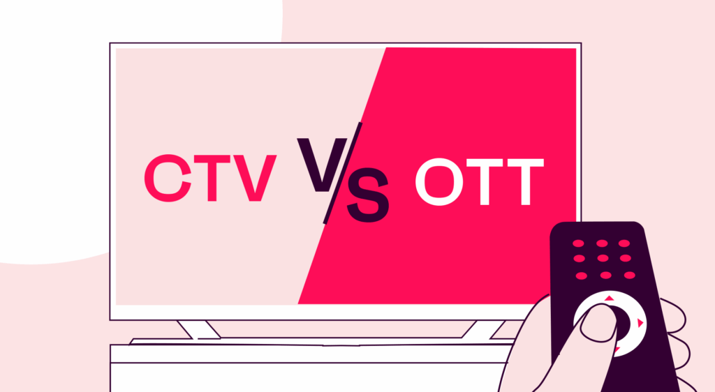 CTV stands for streaming digital media on a connected TV, while OTT refers to delivering content across all devices, not just smart TVs. Thus, CTV advertising is essentially OTT marketing that uses the highest-quality content for living room use.
